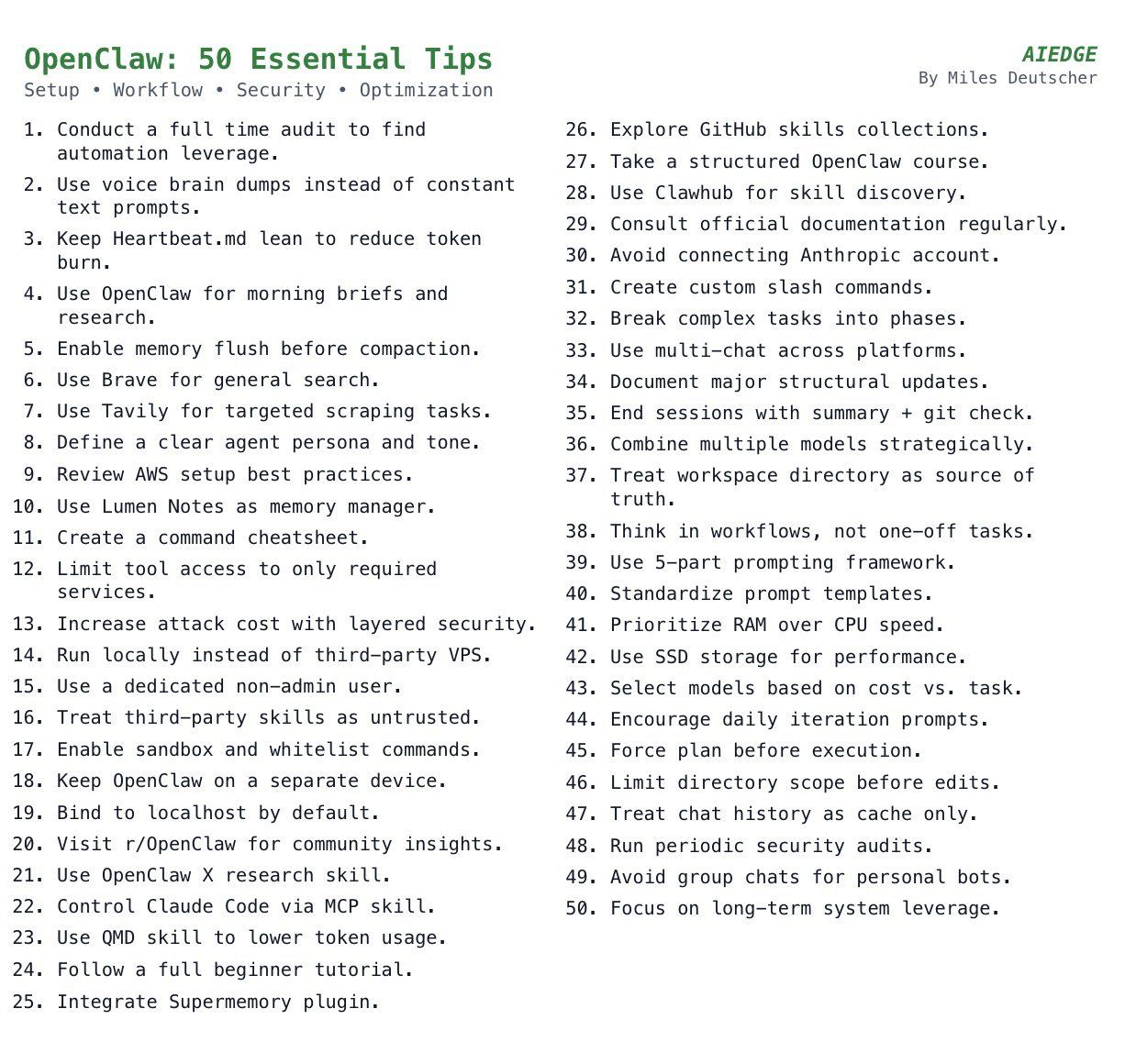 Selected from AI Edge's list of 50 best practices. I think these are the five that hit hardest in a daily workflow: